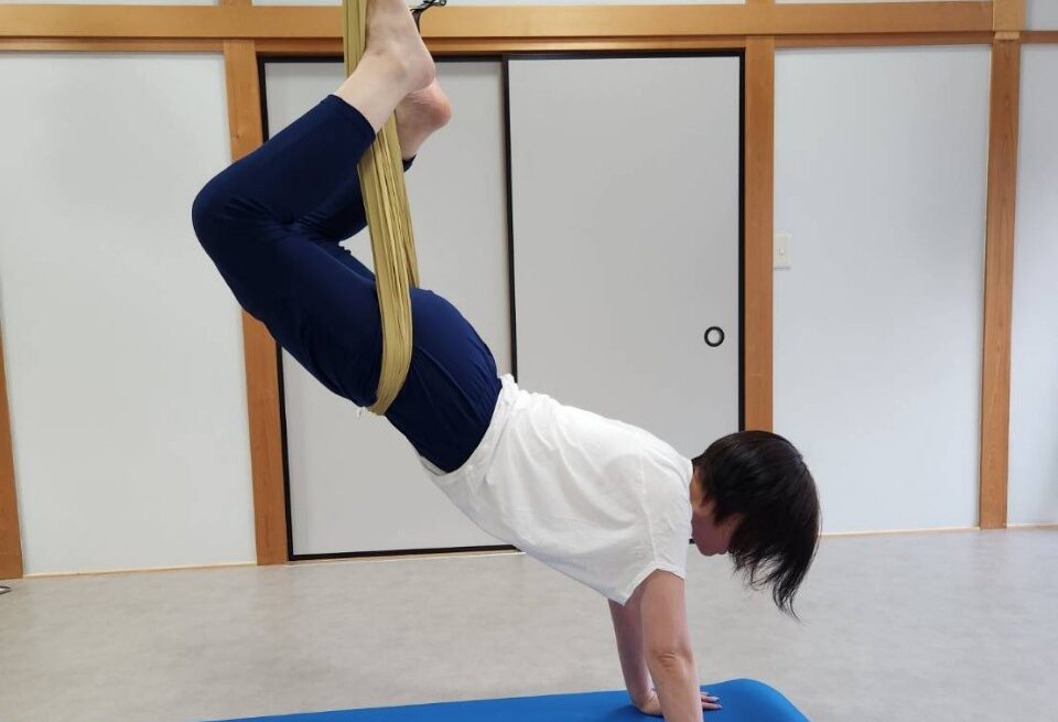 ハンモックを使うヨガは自分の可動域をサポートして柔軟性がアップします!そして、血流が良くなるため冷え症の改善や、自分の身体が正しい位置に導くことが出来るため姿勢の改善になります♪