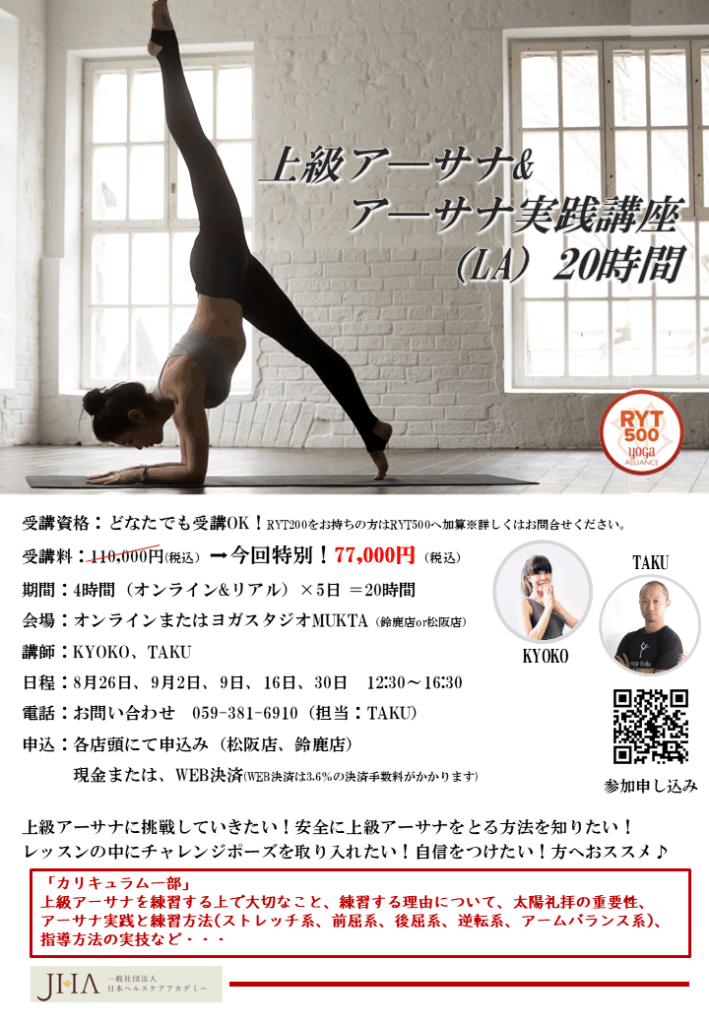 上級指導レッスン/アーサナ実践講座(LA)Level120h